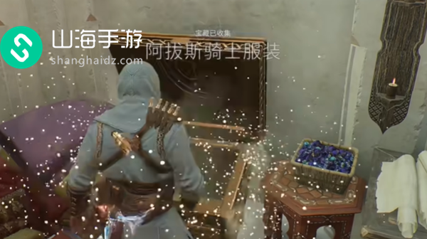 4、拉开书架,进入其后面的储物室,就可以打开箱子获得服装了。