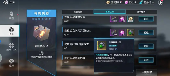 3、接着玩家在通过每周任务,在里面就可以获得升格组件奖励。