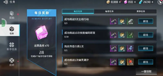 2、随后玩家在任务界面里面的每日奖励里面可以获得大量战术心智碎片。