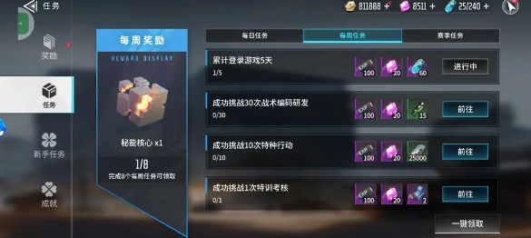 2、随后玩家在任务中的每周奖励可以获得大量秘能核心资源。