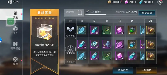 1、玩家在进入到主界面的任务栏里面,然后玩家在里面就可以领取升级奖励了,在升级奖励中包含有秘能核心资源。